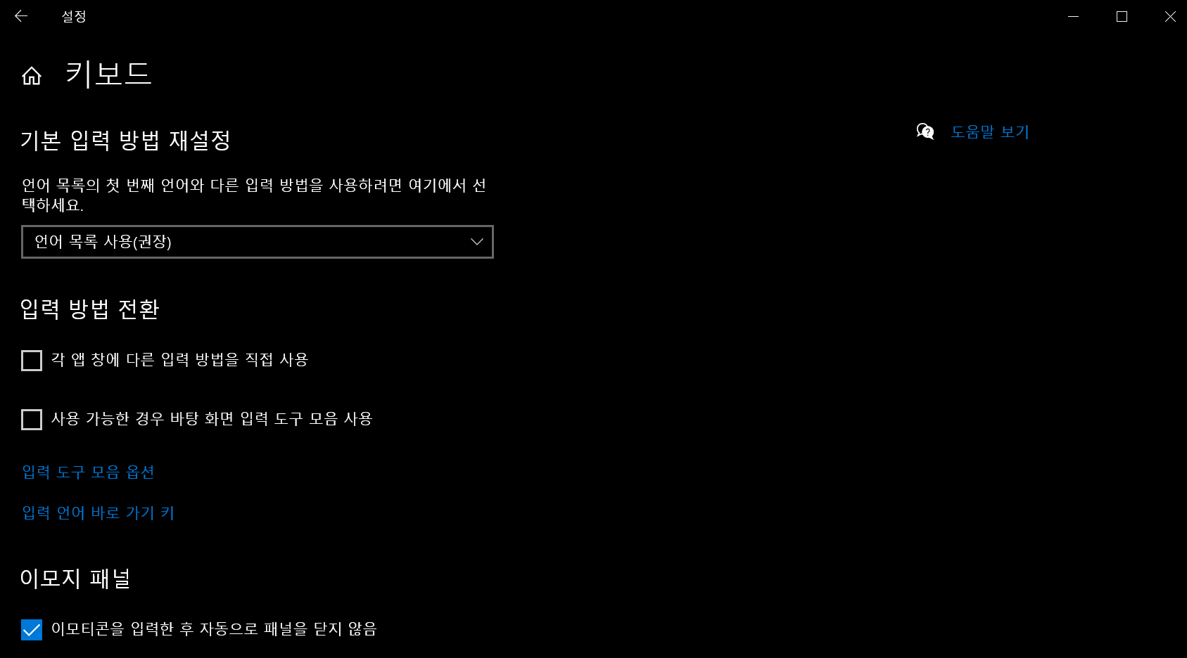 여기에서, 가장 첫번째 셀렉트박스를 보면, "언어 목록 사용(권장)"이 기본값으로 설정되어 있다.
