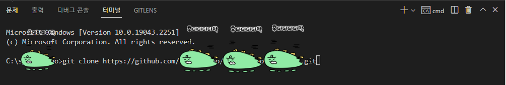 C:\ 상위폴더>git clone {복사한 URL 주소 붙여넣기}