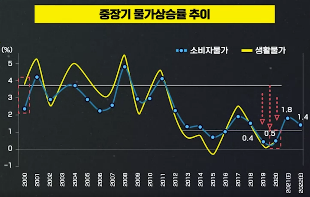 현재의 한국 경제는 목표 물가 기준 대비, 고물가가 아닌 저물가 시대에 가깝다...(2021년 자료 기준)