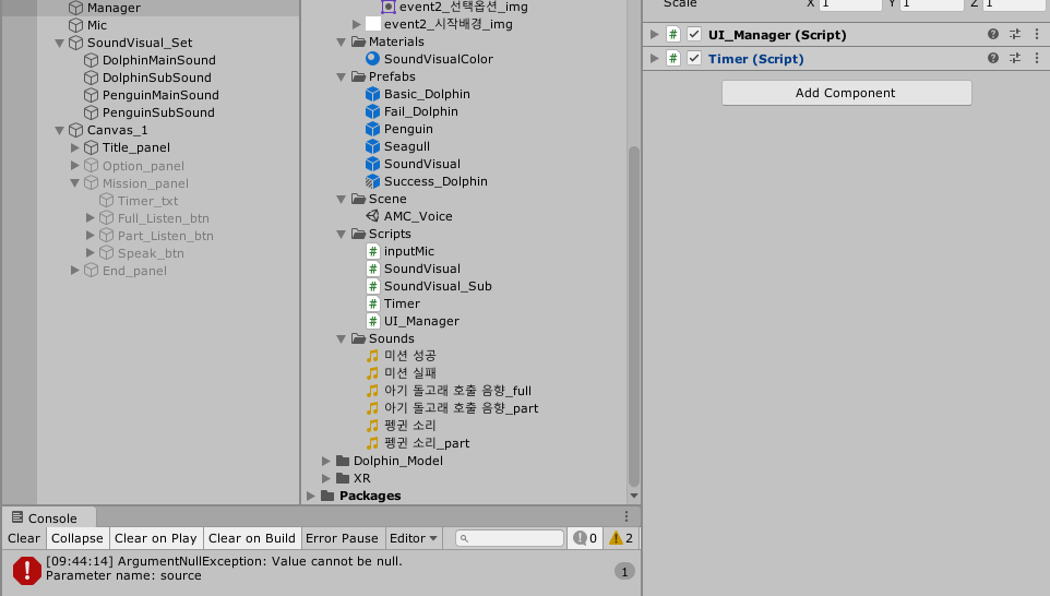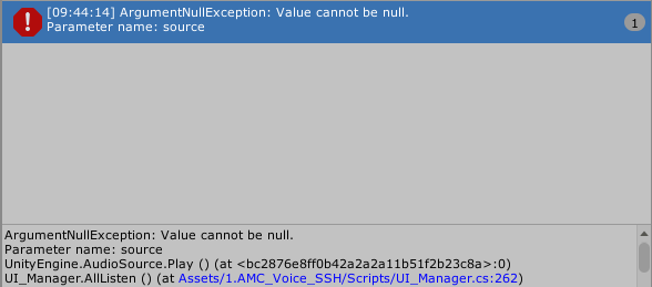 오디오 소스와 관련된 스크립트를 이리 저리 편집하던 중, 만난 오류이다.